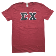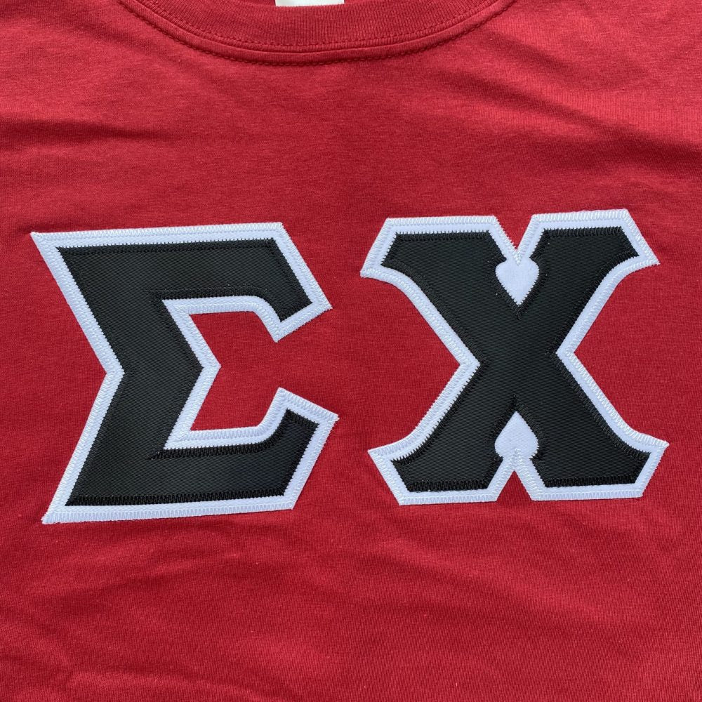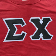 Sigma Chi Stitched Letter T-Shirt | Cardinal Red | Black with White Border
