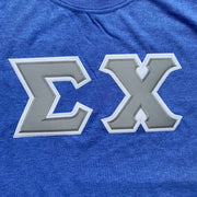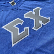 Sigma Chi Stitched Letter T-Shirt | Heather Royal | Gray with White Border