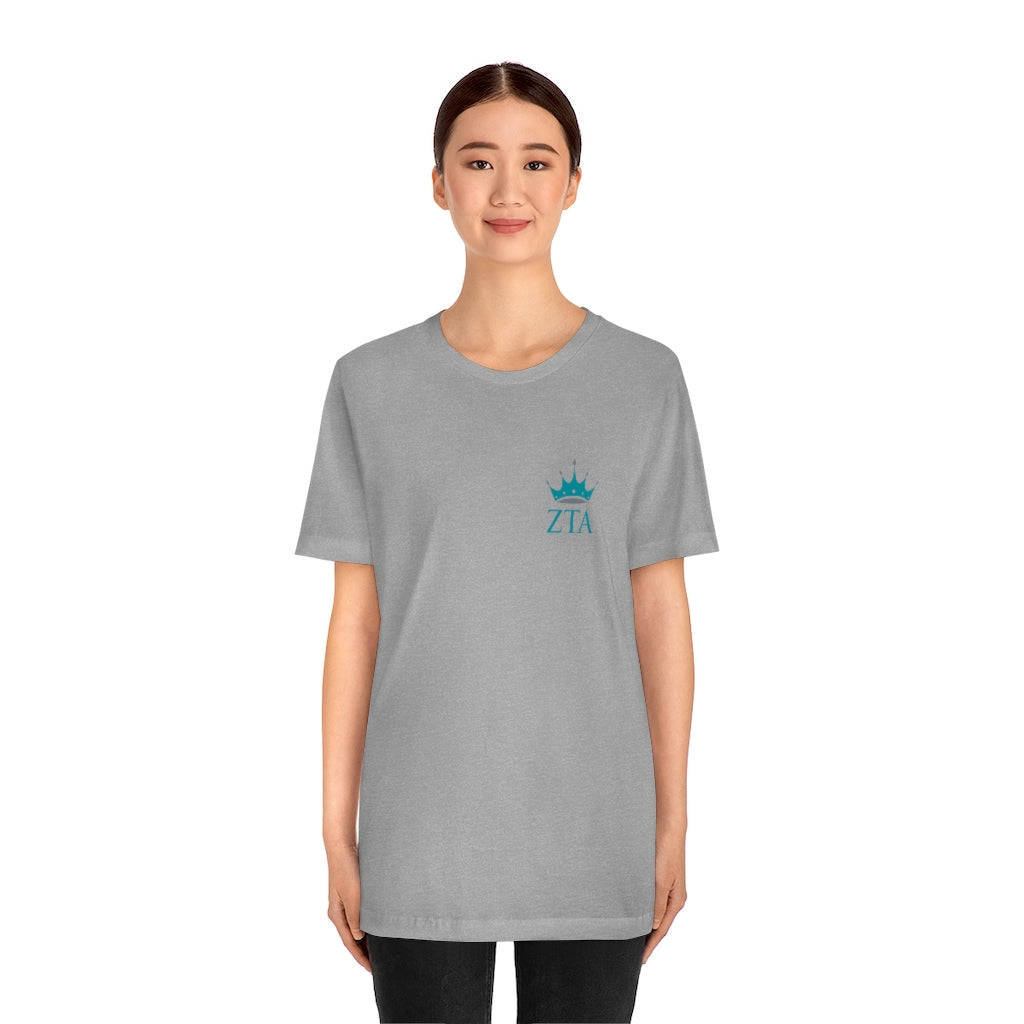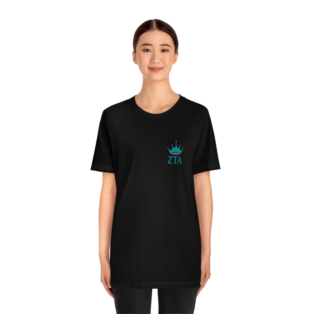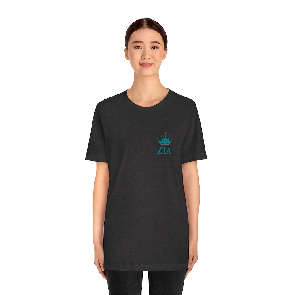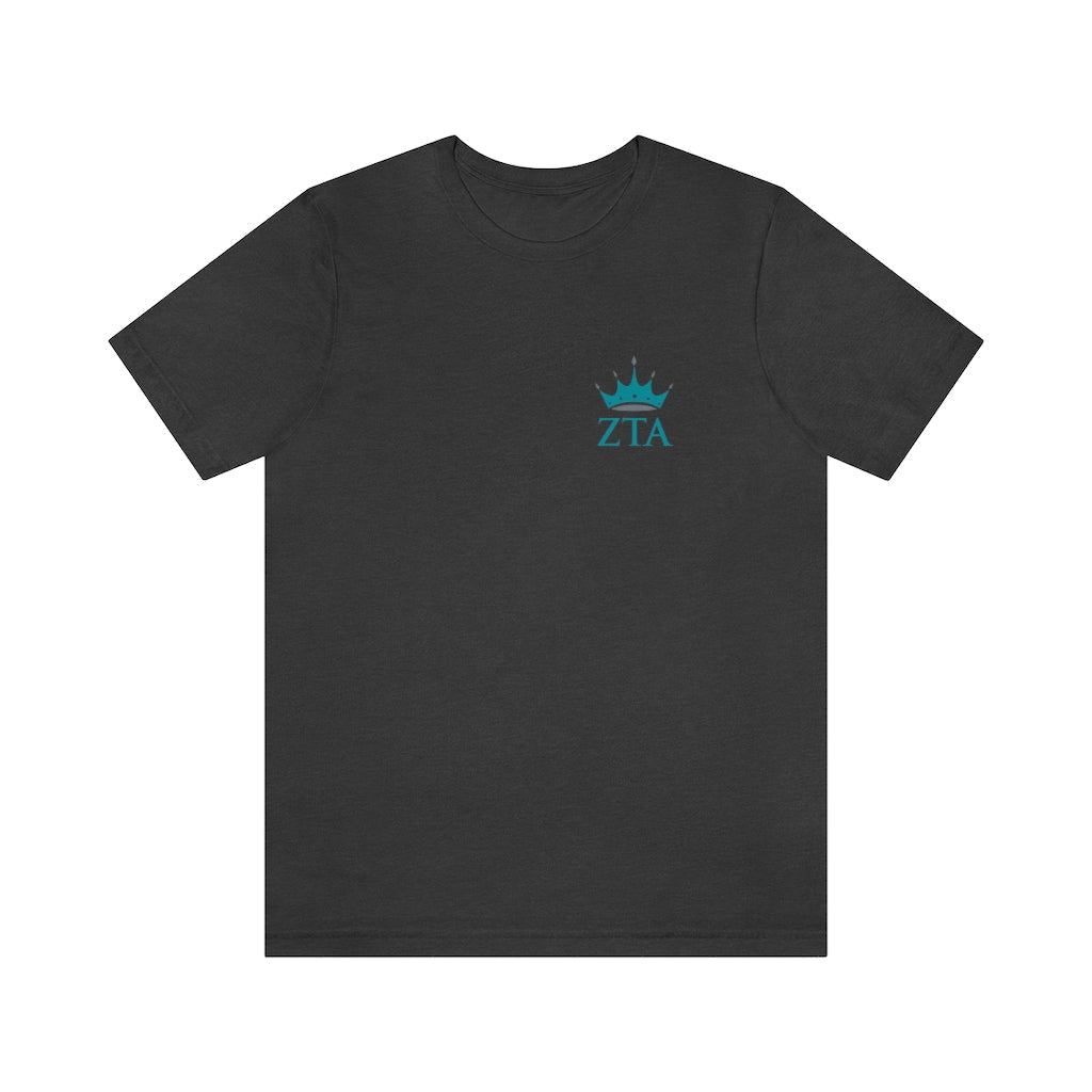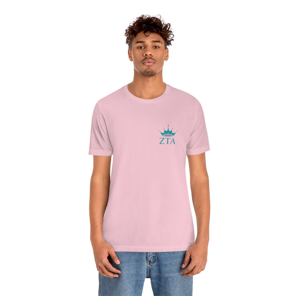 Greek State of Mind offers this Zeta Tau Alpha ZTA Crown LC design on a number of different style garments and color options. This is the perfect gift for any sisters of Zeta Tau Alpha Sorority. This design can be customized for any group event such as rush, bid day, big little reveal, themed parties, intramurals, and formal. Show off your pride for ZTA today!
