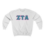 ZTA Printed Letters | Turquoise & Hot Pink Border Crewneck