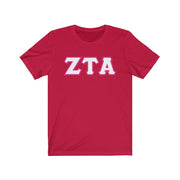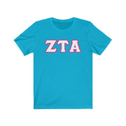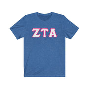 These Zeta Tau Alpha Fraternity letters are printed NOT stitched. They come in a number of color and garment options.