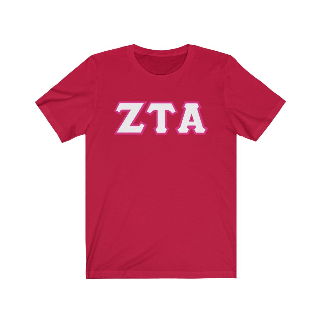 ZTA Printed Letters | White with Hot Pink Border T-Shirt