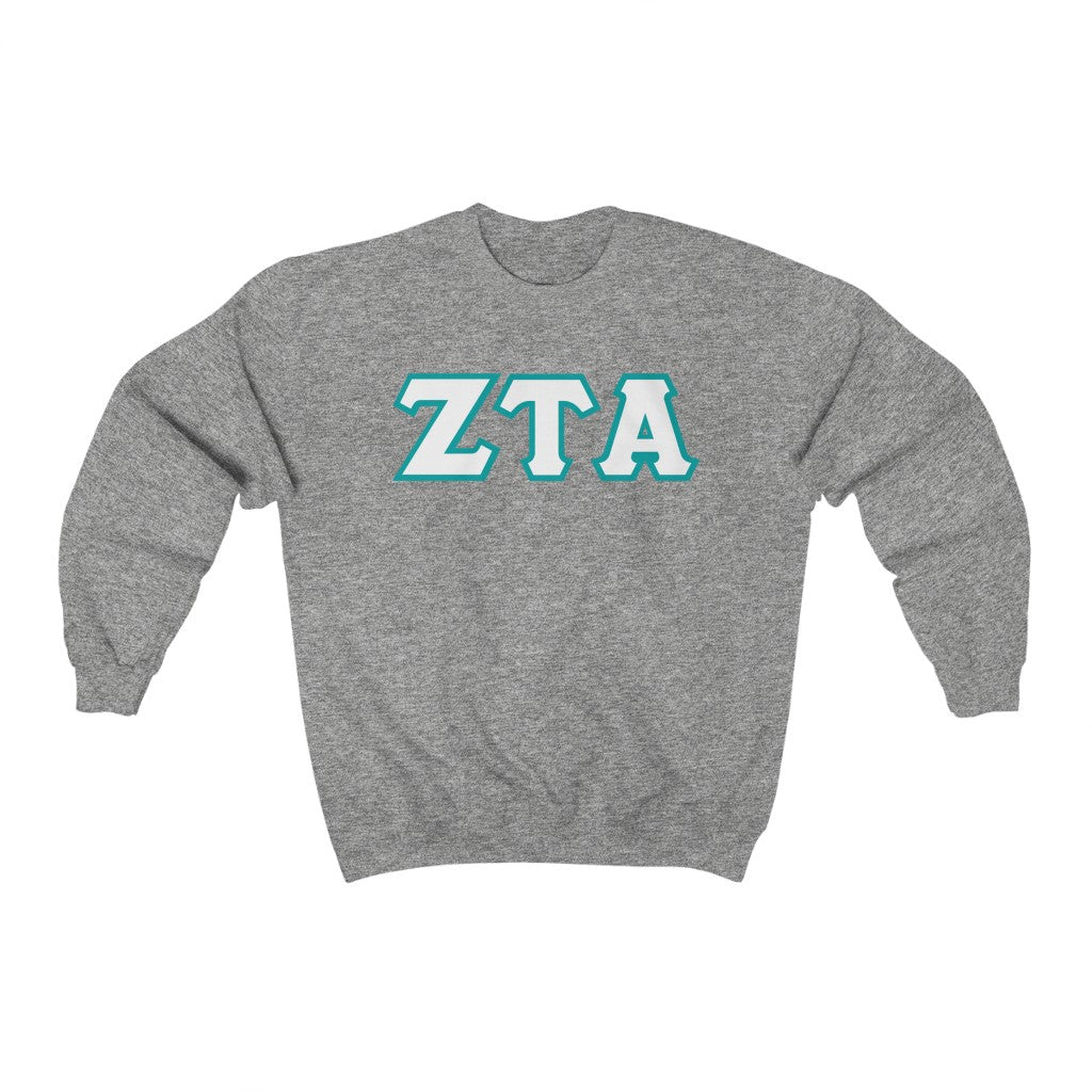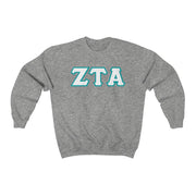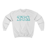 ZTA Printed Letters | White with Turquoise Border Crewneck
