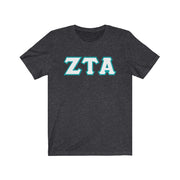 ZTA Printed Letters | White with Turquoise Border T-Shirt