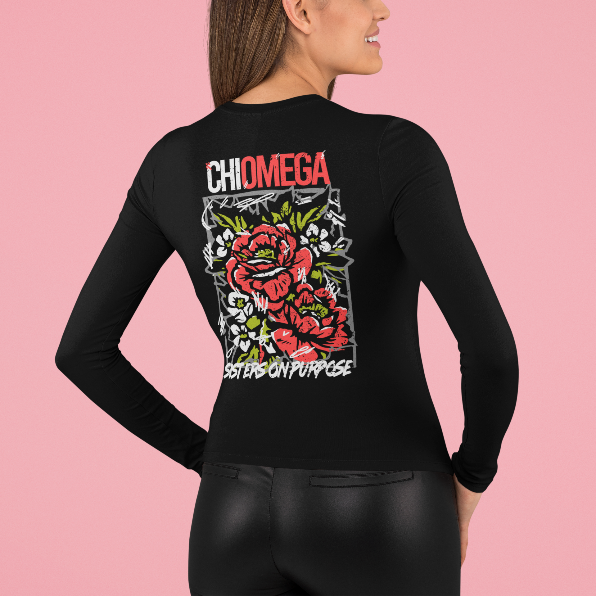 Greek State of Mind offers this Chi Omega Grunge Roses design in a number of different style garments. This is the perfect gift for any sisters of Chi Omega . This design can be customized for any group event such as recruitment, bid day, formal, etc. Show off your CHI O pride today!