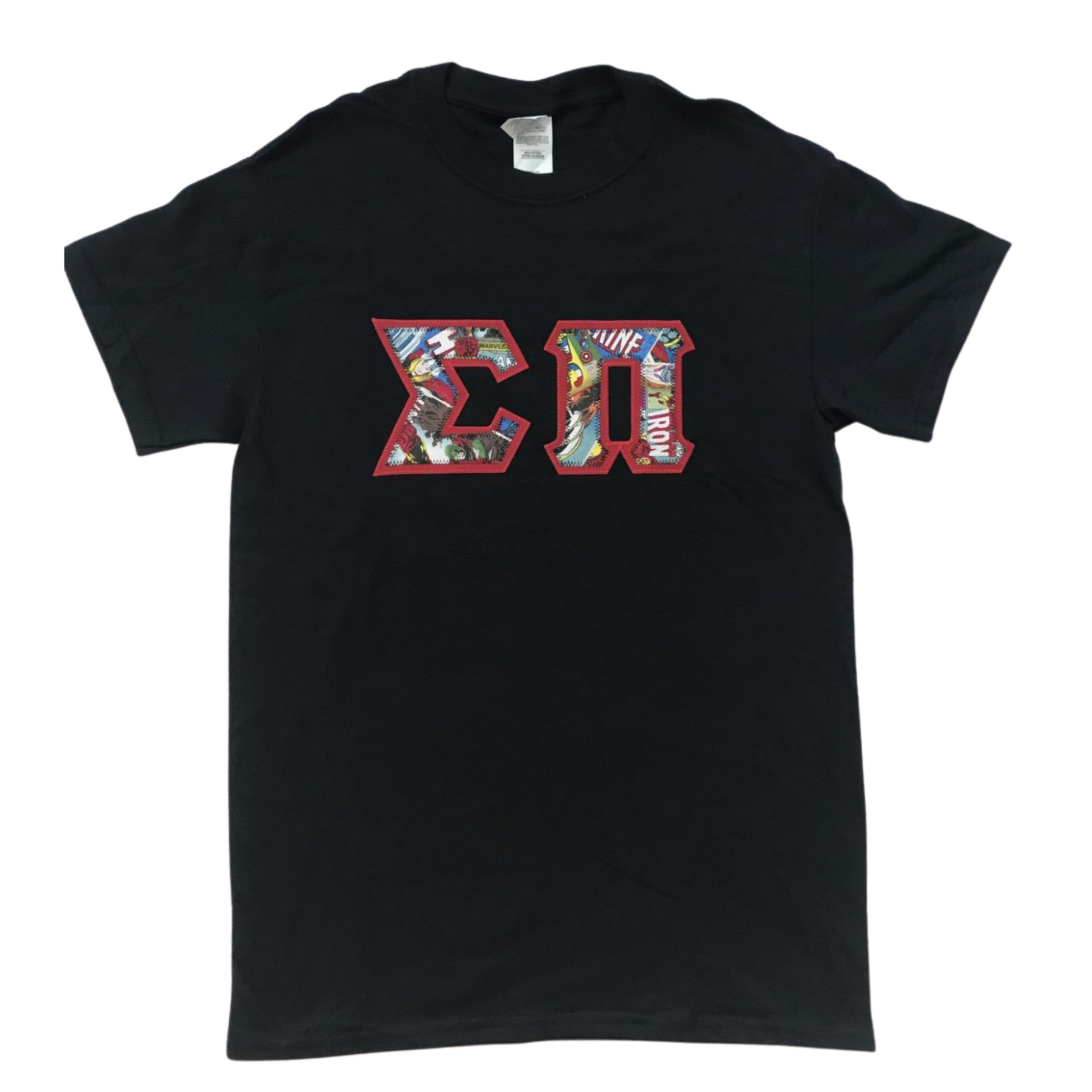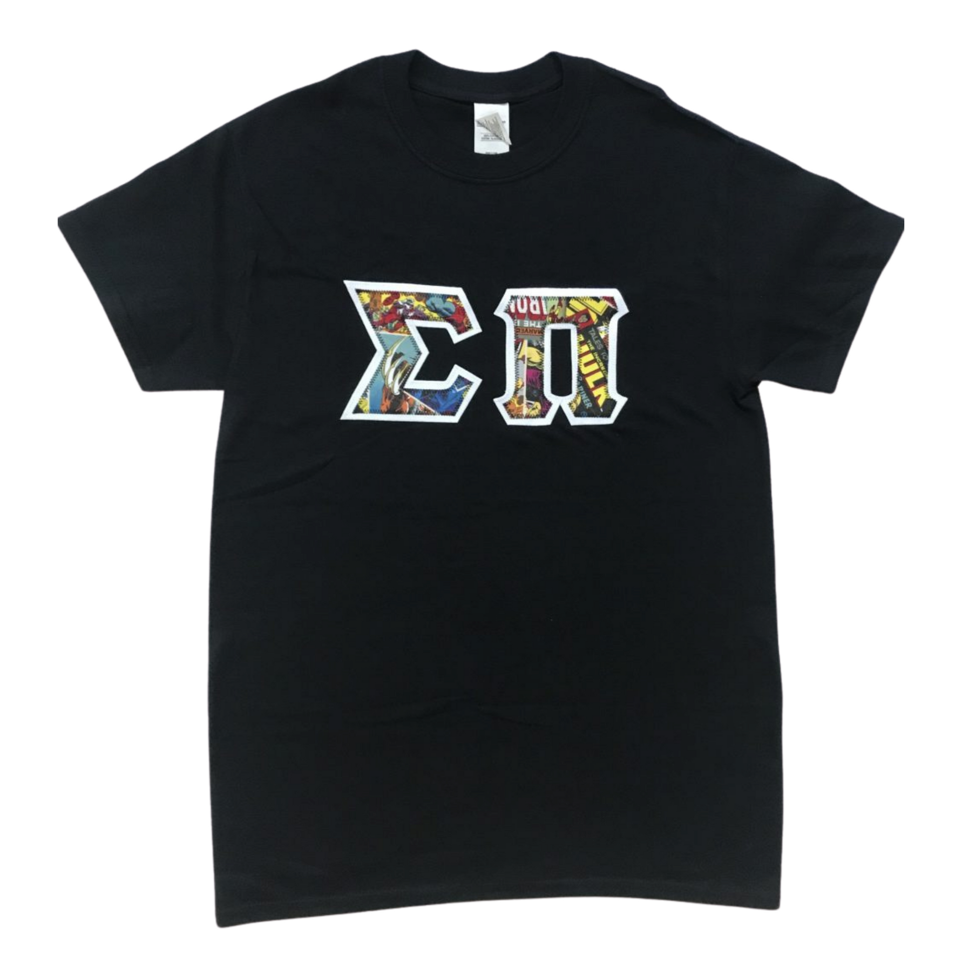 Sigma Pi Stitched Letter T-Shirt | Marvel Heroes Pattern