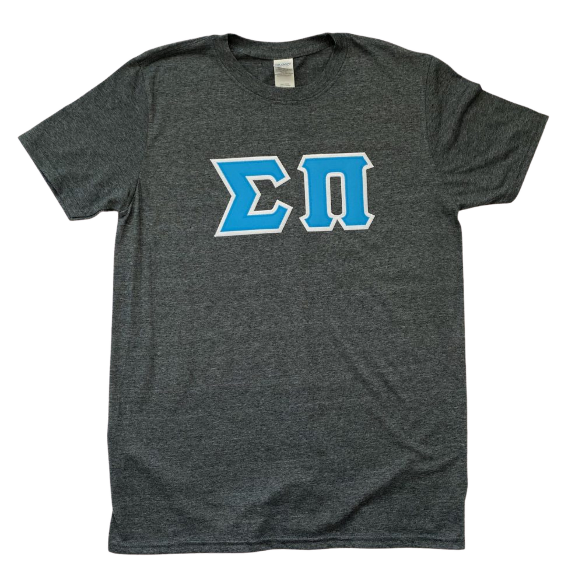 Forget about those cheap, not-quite-right heat pressed letters with simulated stitches! Greek State of Mind takes no shortcuts when preparing our products. These Greek letters are not heat pressed to this shirt - they are actually embroidered with real stitching around the interior letters as well as the exterior borders! Each shirt is hand-prepared and the letters are hand-aligned before the sewing machine stitches the letters to the shirt.
